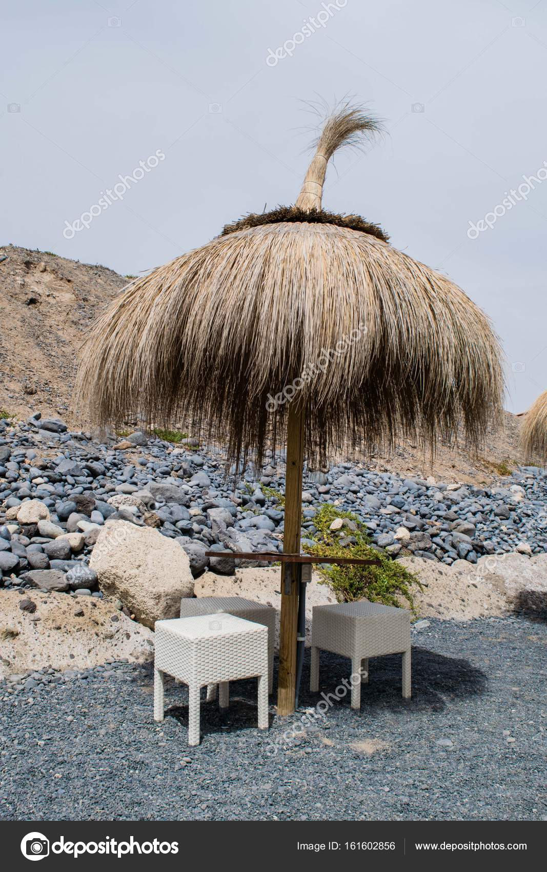 Cabane Parasol De Paille Et Des Chaises Sur La Plage De